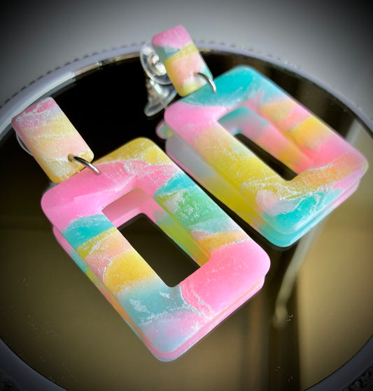 "Arizona Lemon Iced Tea" Handmade Clay Rectangular Hoop Earrings