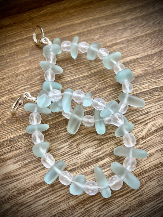 "Mint Drip" Handcrafted Glass Beaded Teardrop Hoop Earrings