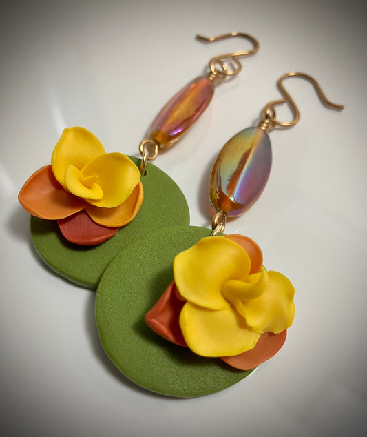 "Fall Florals" Handmade Clay & Beaded Floral Earrings