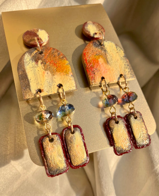 "Renaissance Romance" Canvas Art Inspired Clay & Beaded Dangle Earrings