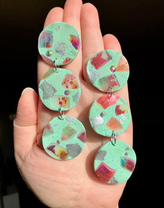 Bronx Girl Pretty Art's handmade earrings are one of a kind treasures. Each exclusive design is made from various artistic mediums, primarily from polymer clay. Other mediums used for earring designs include air dry clay and pre-cut wood.