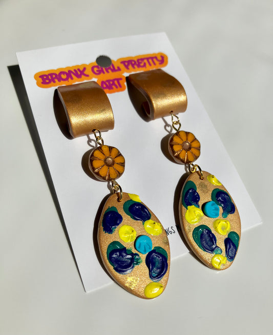 Bronx Girl Pretty Art's handmade earrings are one of a kind treasures. Each exclusive design is made from various artistic mediums, primarily from polymer clay. Other mediums used for earring designs include air dry clay and pre-cut wood.