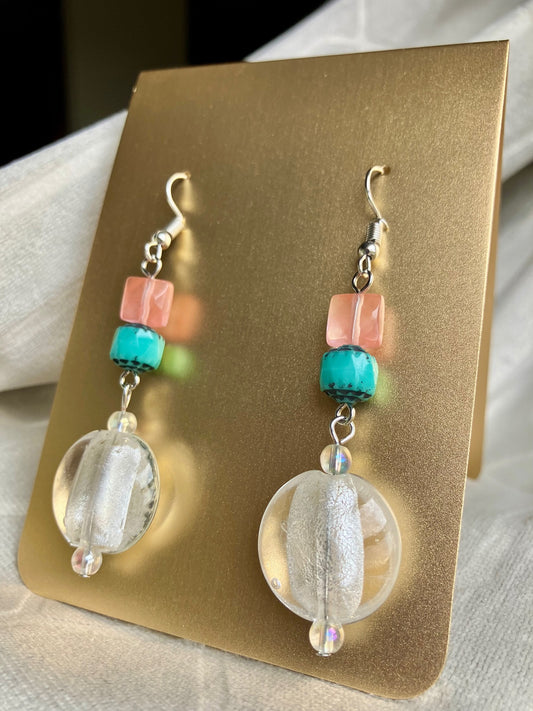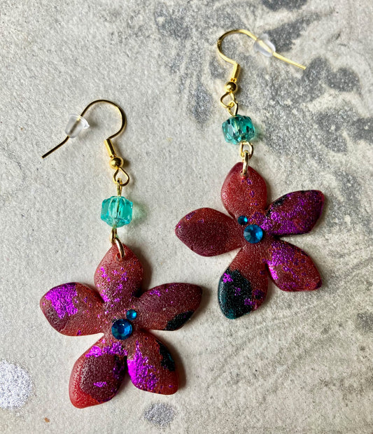 Floral Inspired Clay and Glass Beaded Drop Earrings